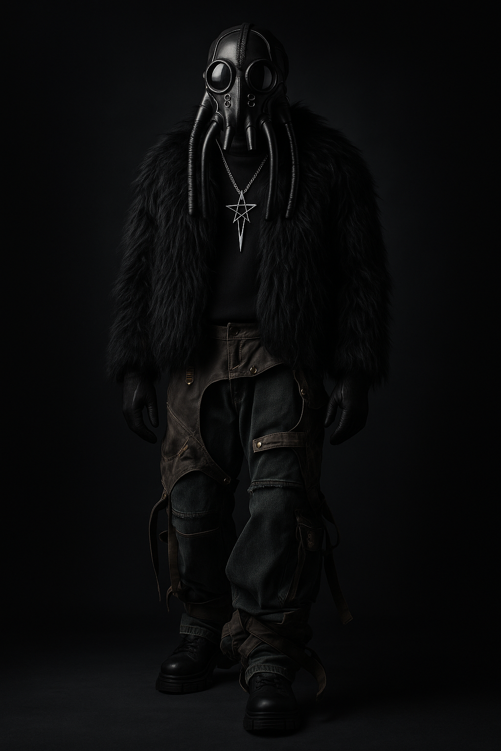 “Dark PU Leather Cargo Pants – Wide-Leg Designer Fit with 3D Pockets | Emo Streetwear Edition”