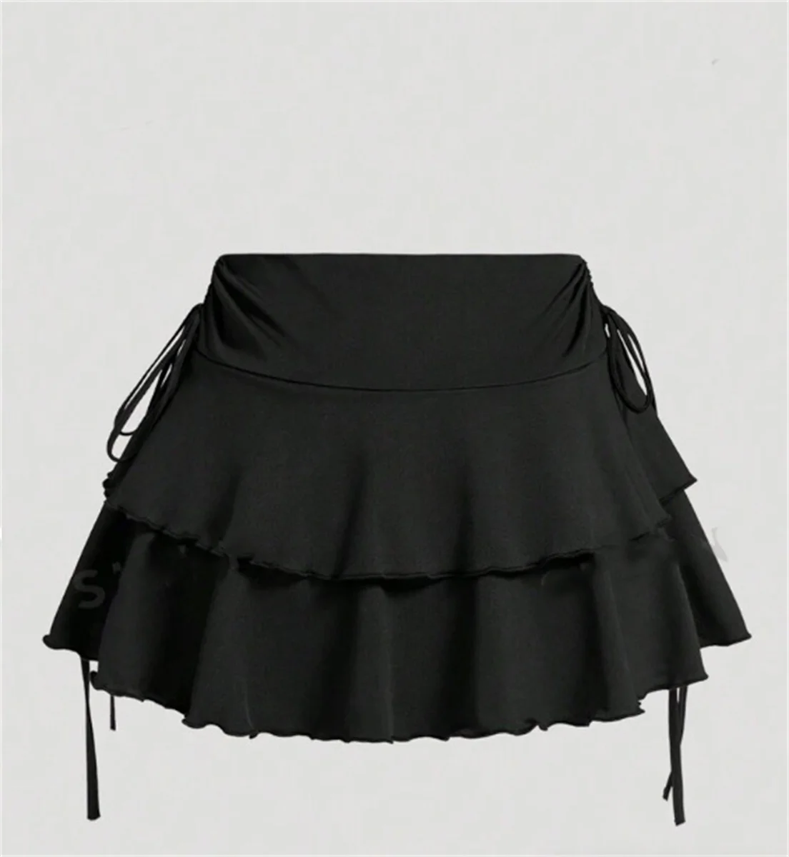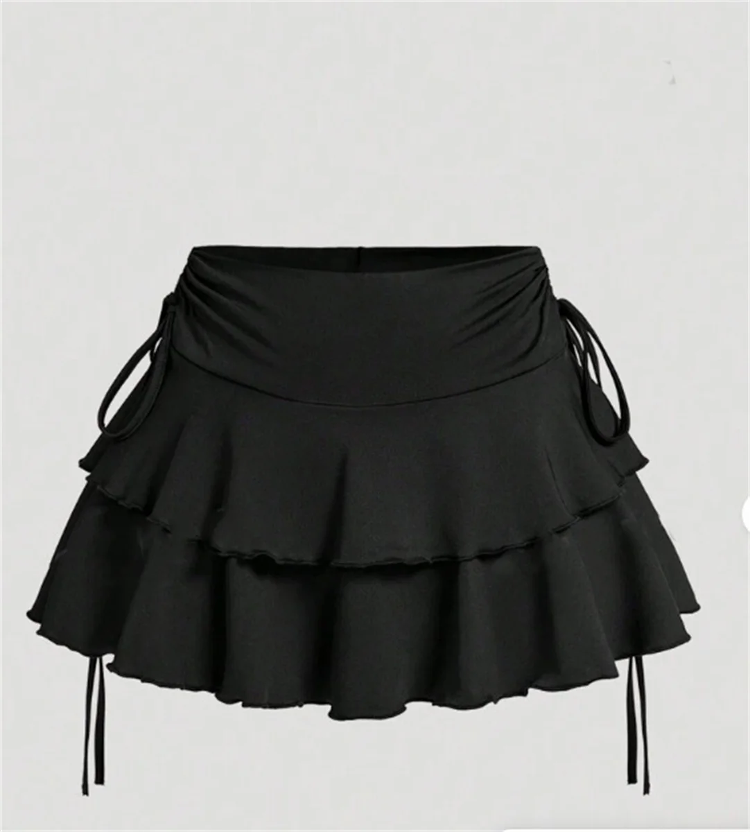 Bring out your dark side with this high-waist layered mini skirt. 🖤 With adjustable side ties and a flared gothic silhouette, it’s perfect for Y2K, emo, or alternative outfits. Pair it with boots and accessories for a bold underground look.
