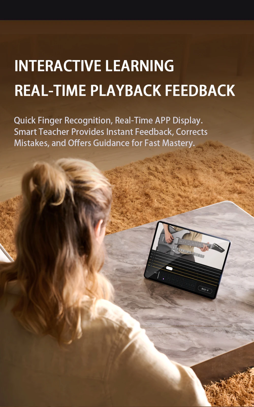 This is your complete solution for learning guitar,practicing and creating. Beginners often experience finger pain, struggle with chord practice, and face slow progress, which can lead to a loss of interest when learning the guitar.