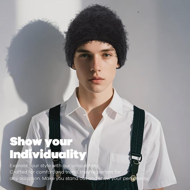 Emo Distressed Beanie 🖤 Fuzzy Knit Winter Cap Unisex