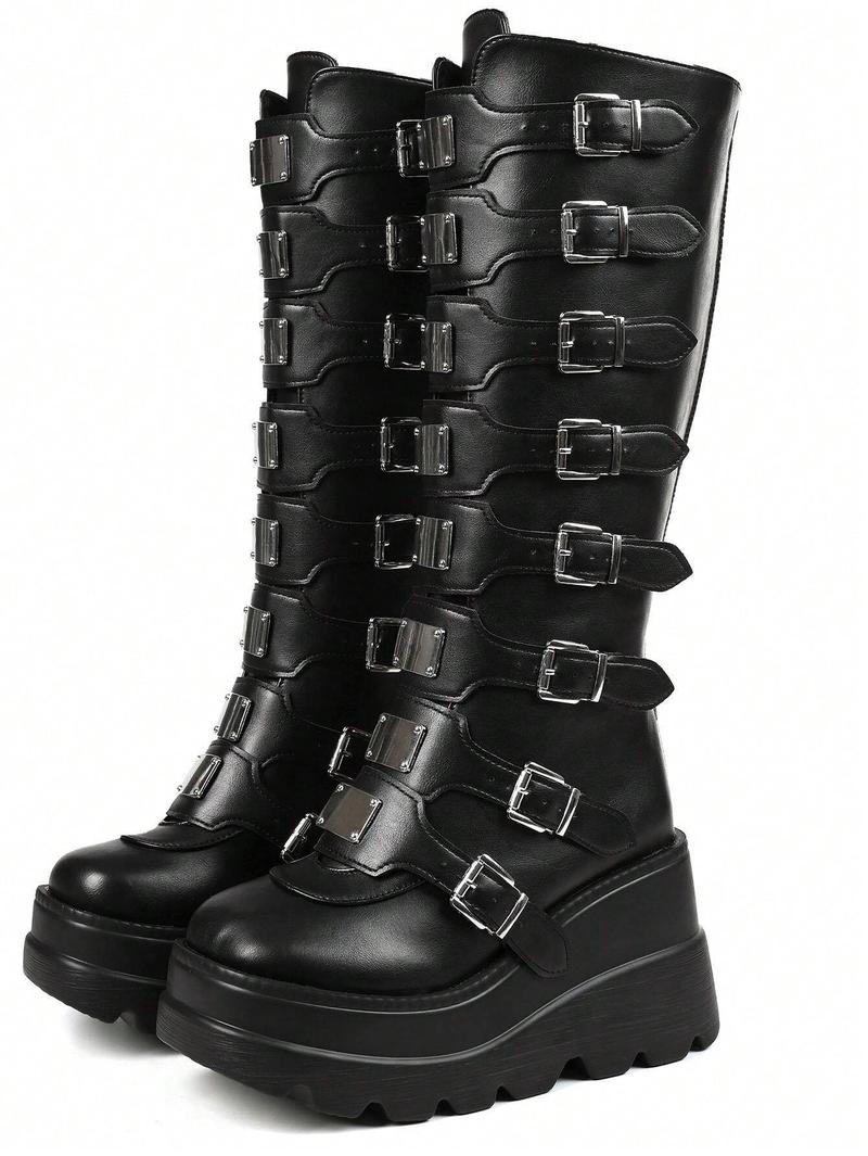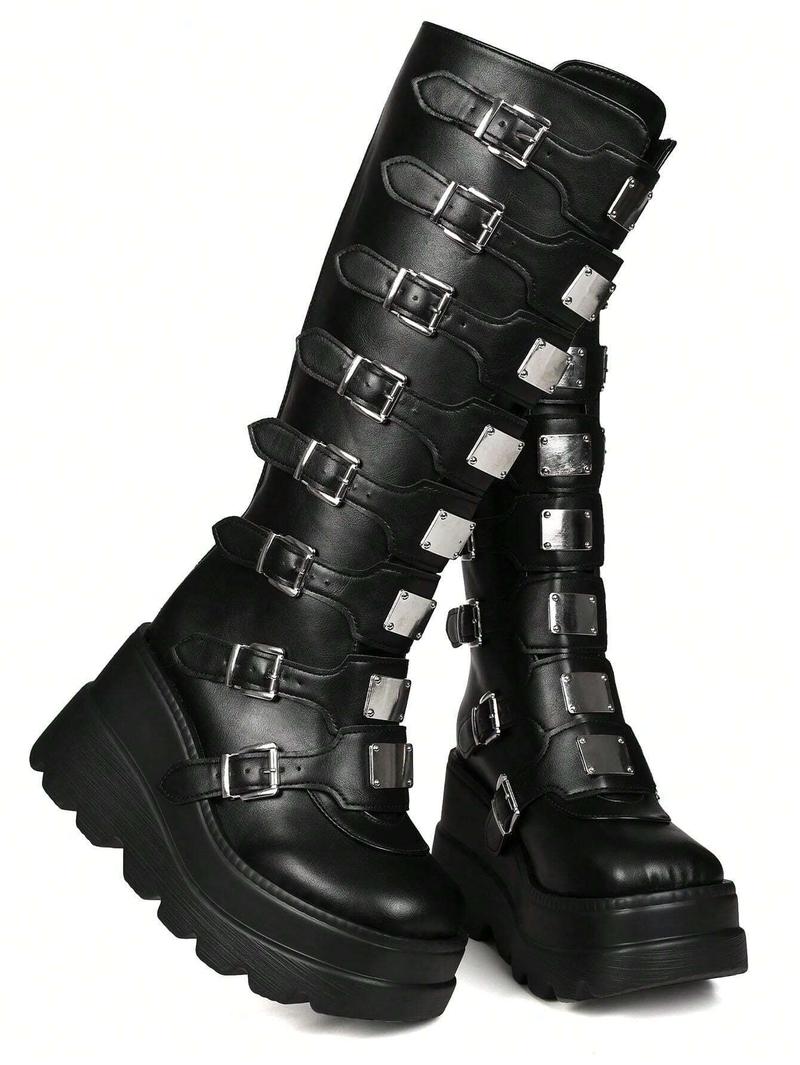 “Gothic Combat Boots 🖤 Chunky Platform Punk Heels for Women”