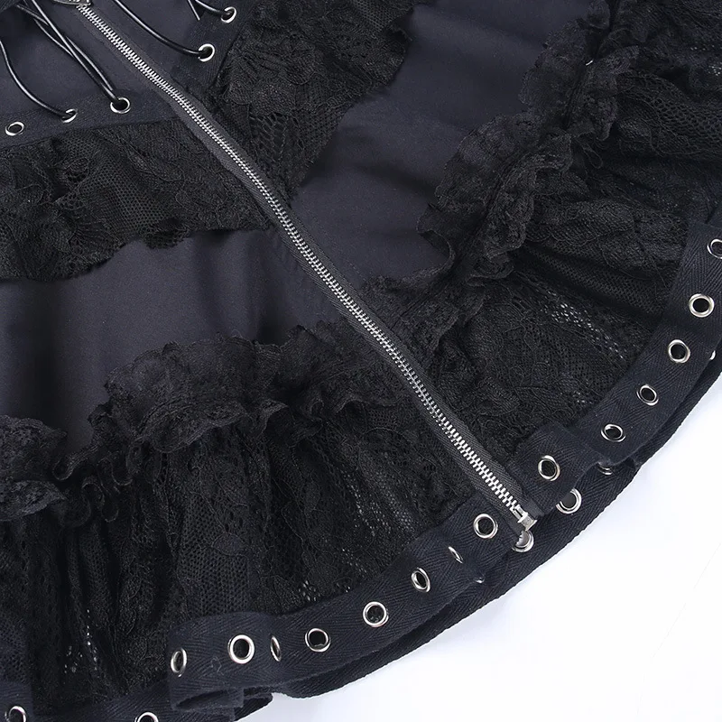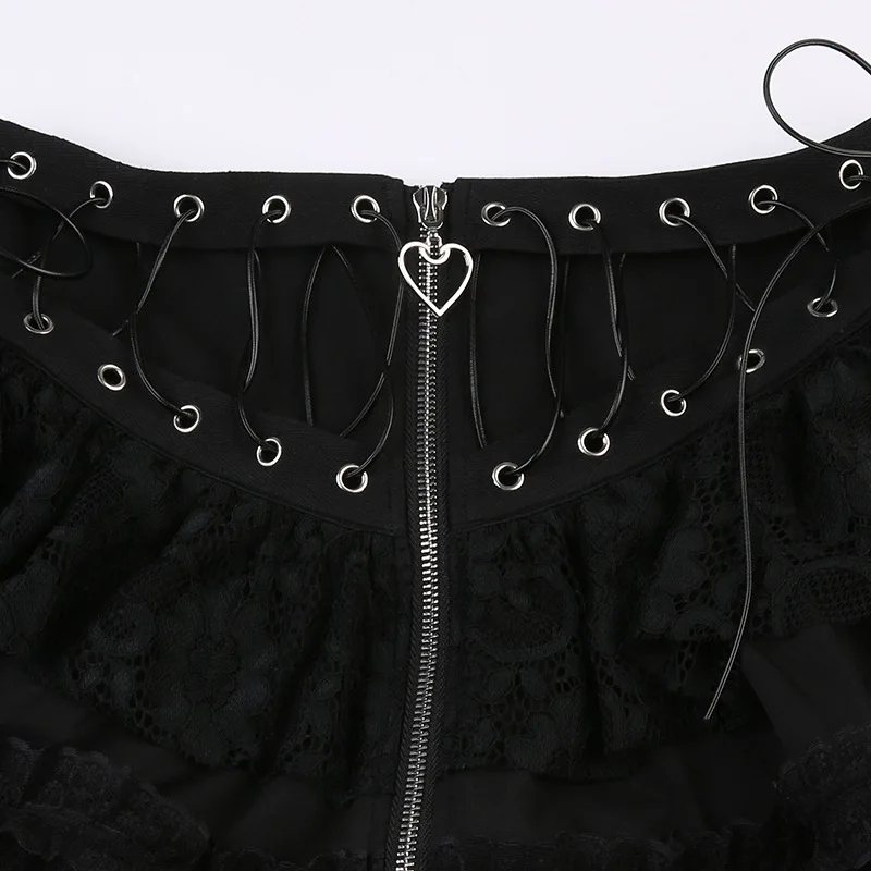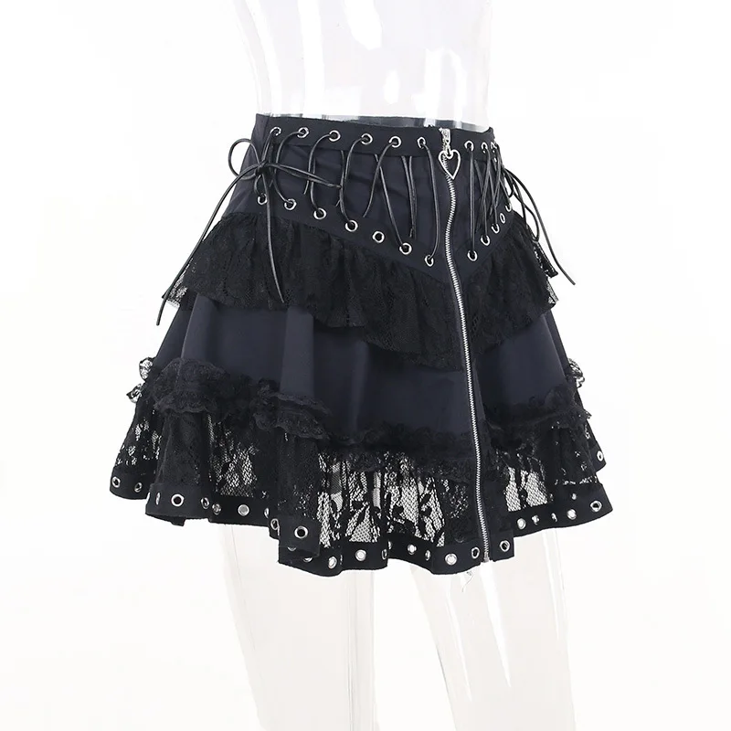 Dark, bold, and irresistible. 🖤 With lace layers, zipper heart detail, and punk vibes, this skirt is perfect for emo and alternative looks.