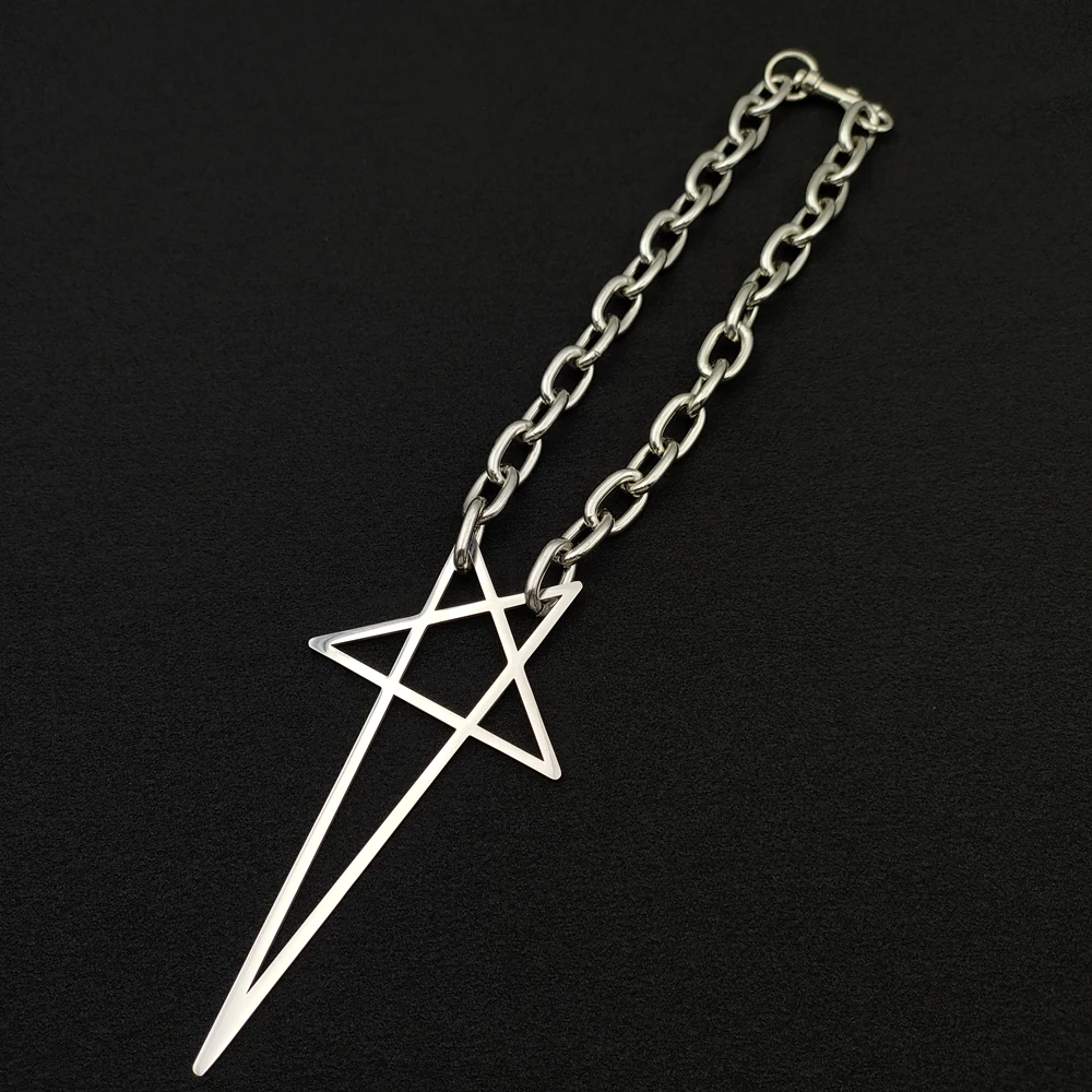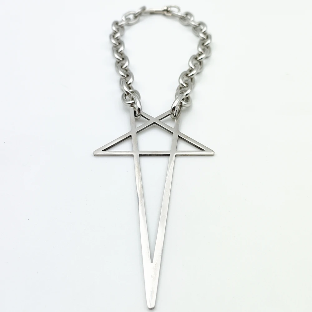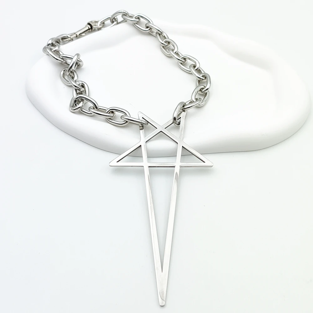 Heavy stainless steel chain (45cm) with a sharp star-cross pendant. Durable, stylish, and perfect for emo & gothic fashion. ⚡
