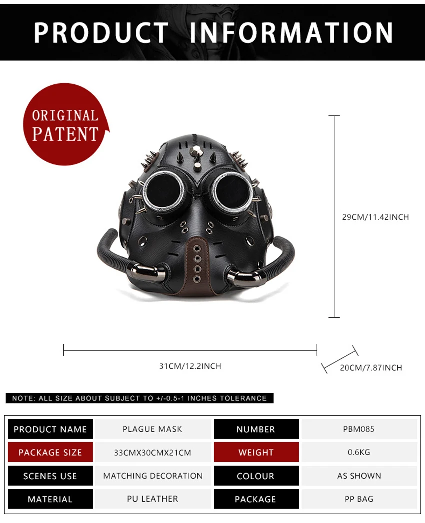 Plague Doctor Steampunk Gas Mask – Gothic PU Leather Cosplay Halloween Costume Mask